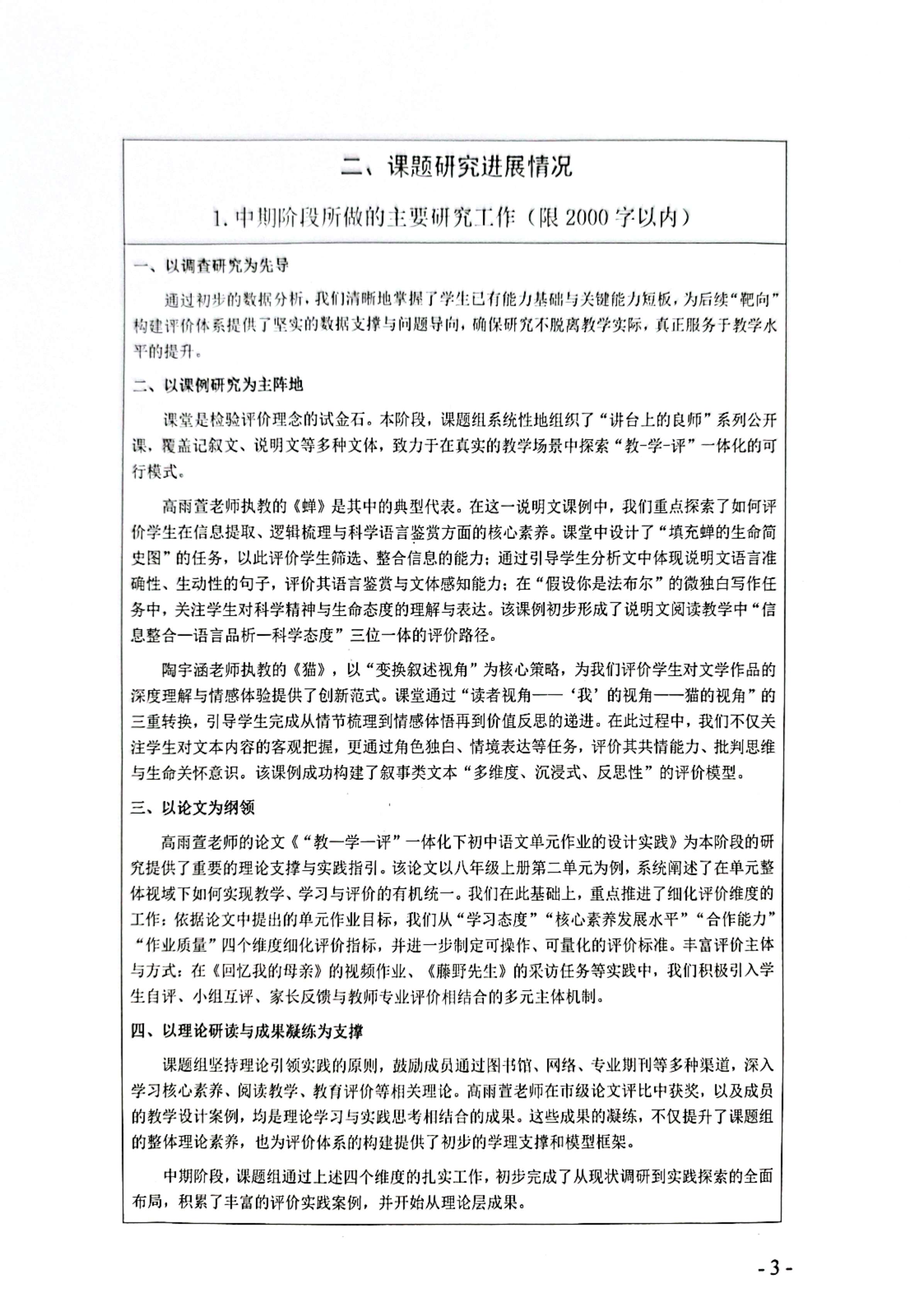 《基于核心素养的初中语文阅读教学评价体系建构》中期评估报告