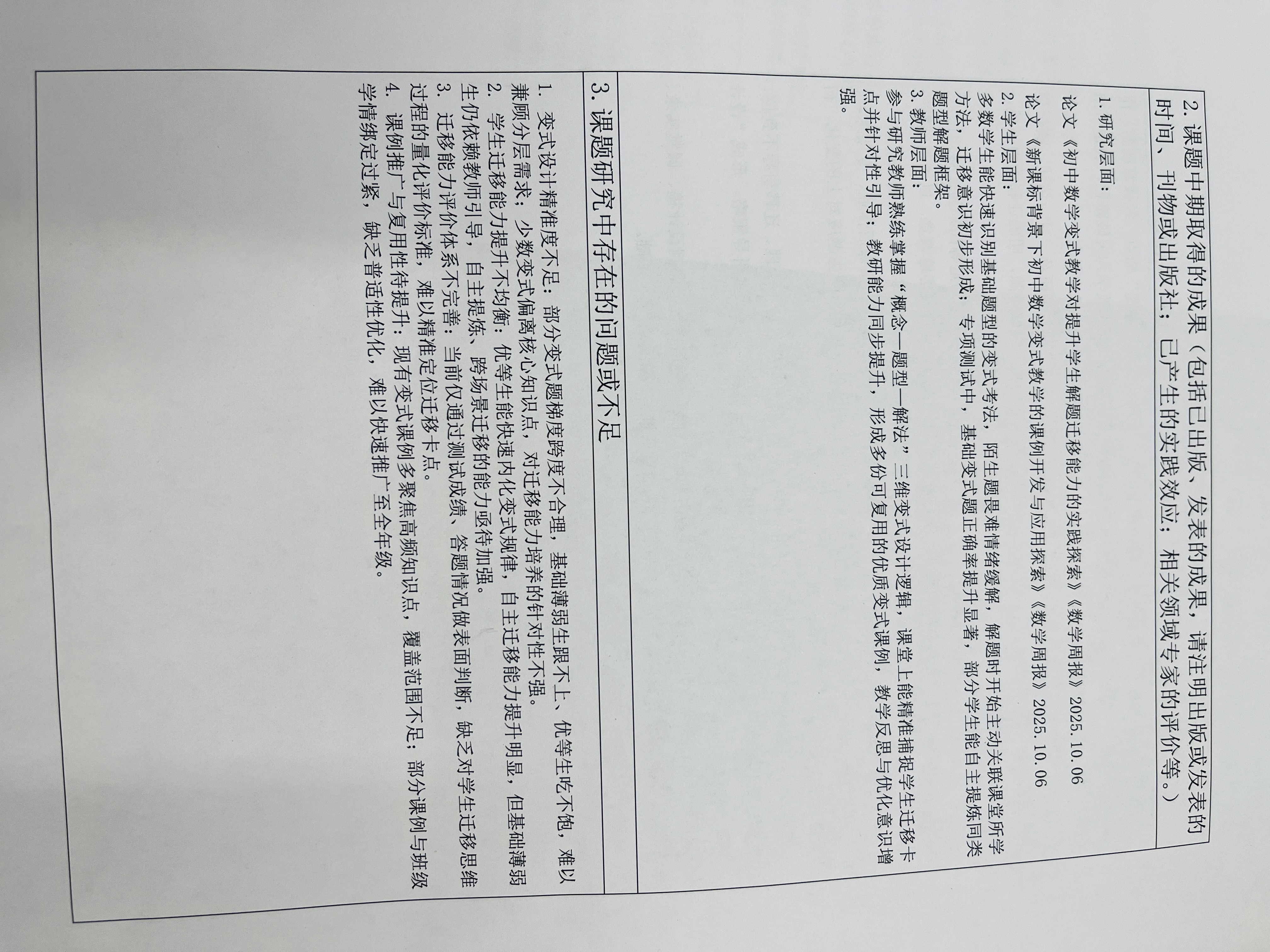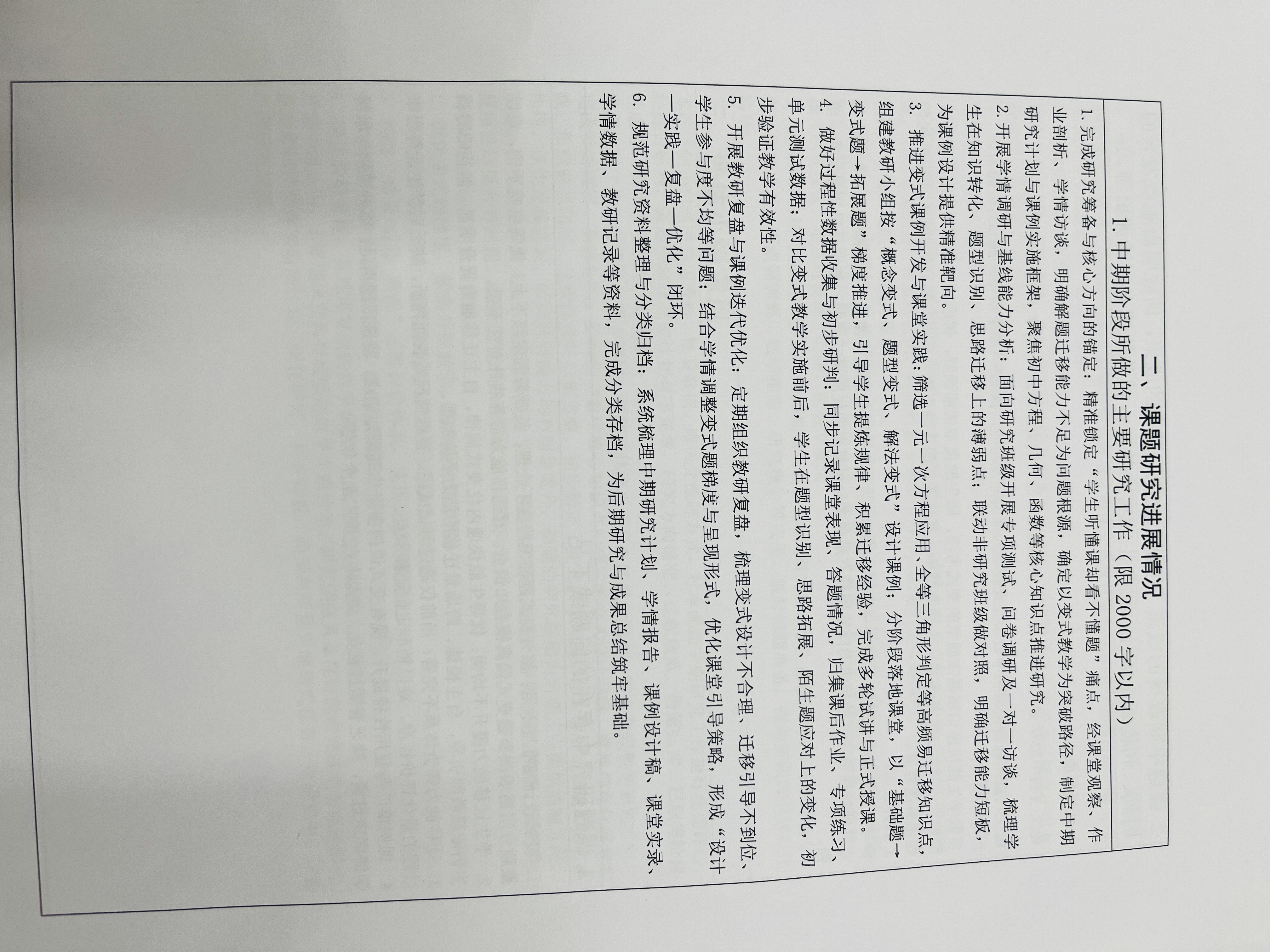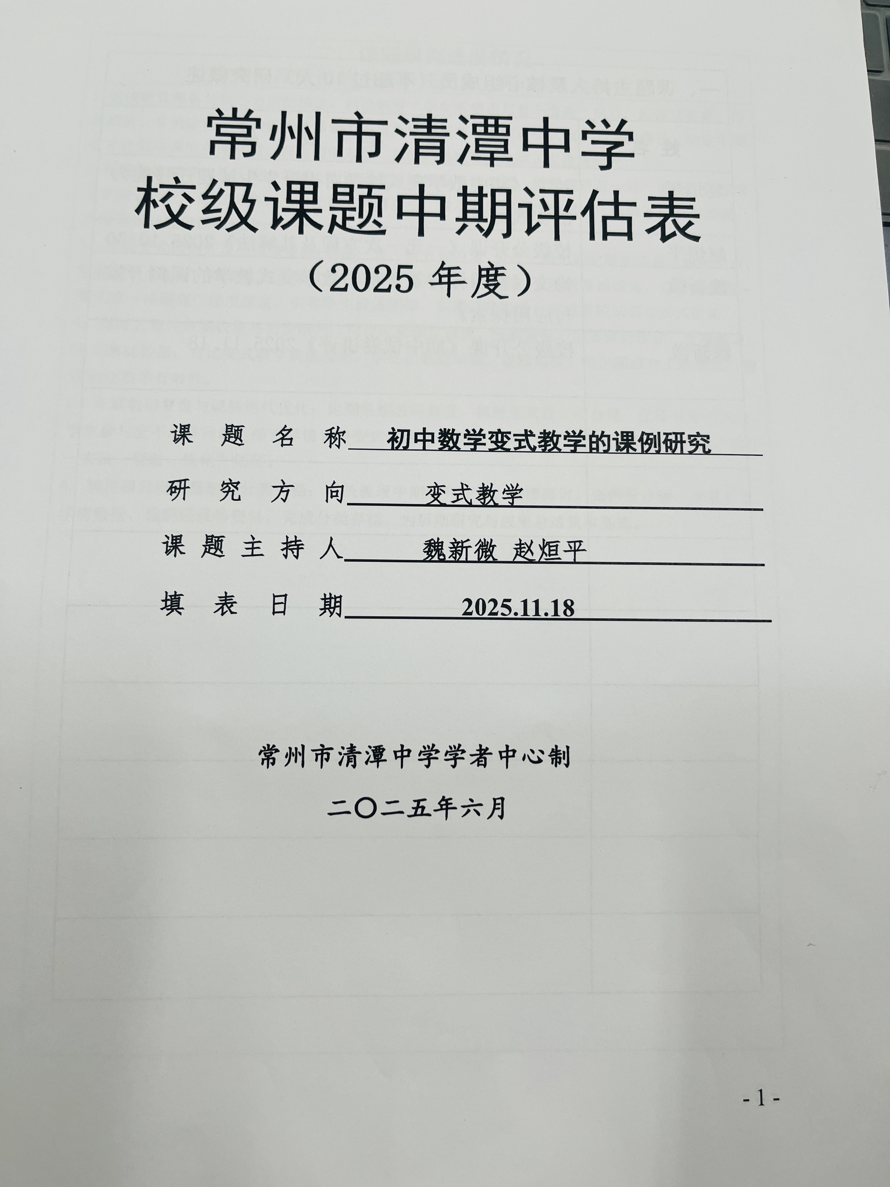 《初中数学变式教学的课例研究》中期评估表